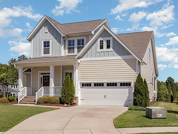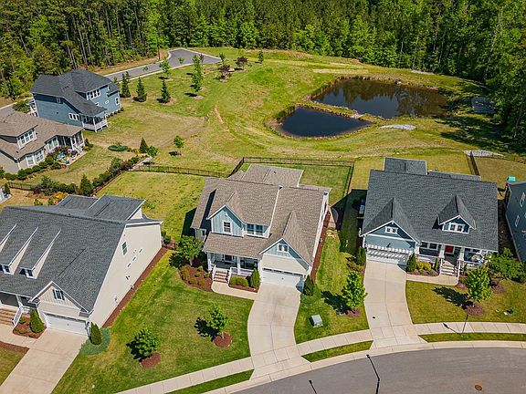 Fantastic open floorplan with first floor master bedroom at a great Durham location. Tons of natural light everywhere. Upgraded kitchen with huge island, gorgeous cabients, walk-in pantry, and gas cooktop. Large master bedroom with vaulted ceiling and fan. Big master bathroom includes double vanity, tile flooring, spacioius walk-in tiled shower, and adjacent walk-in closet. Vaulted ceiling and wainscoting in the dining/breakfast room. First-floor office with french doors looks to covered front porch. Beautiful hardwoods in first floor areas and the stairs. Drop zone built-in situated near 1st floor laundry room with tile, cabinets, shelving, and a window. Covered back deck looks across fenced-in backyard to HOA common area with a pond and trees in a tranquil setting. Upstairs offers two big bedrooms, an enormous loft, plus a bonus room. Tons of storage space on both floors. Attached two car garage. In-ground sprinkler system. Great shopping and restaurants nearby, plus the home is 10 minutes to Jordan Lake, 10 minutes to downtown Chapel Hill, 15 minutes to the heart of RTP, and 20 minutes to downtown Durham.