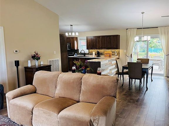 Welcome to this inviting 3-bedroom, 2-bathroom home where comfort and style meet! With everything conveniently located on one level—no steps—this home is perfect for easy living. The split-bedroom floor plan offers plenty of privacy, featuring a spacious master suite complete with a walk-in closet. Vaulted ceilings and large windows flood the living space with natural light, making the home feel bright and airy. The kitchen was updated & redesigned in 2021 with maple cabinetry, countertops, a stone backsplash, sink and faucet. Stainless steel appliances are included, and you’ll appreciate the thoughtful touches such as the spice cabinet, pantry space, and pull-out garbage can. The buffet cabinet in the dining area is an added bonus and will stay with the home (the wine chiller does not stay). The home was further updated in 2021 with stylish LVP flooring throughout most of the living areas, providing durability and a modern touch. Step outside and enjoy your own backyard oasis. The sellers have extended the patio with additional concrete and added a lovely pergola—perfect for entertaining or simply relaxing outdoors. The beautiful landscaping includes established perennials, and if you love container gardening, you’ll be right at home with plenty of space to nurture your green thumb. This home offers the perfect blend of convenience, charm, and modern updates. Schedule your showing today! #lovewhereyoulive