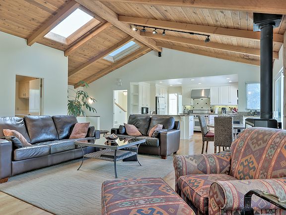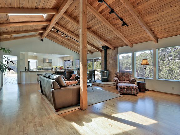 Unblockable Windy Hill views. Work from home in this private, tri-level home. Picturesque grounds cradle this entertainers delight close to great schools, trails. Formal entry, dining, and living room with fireplace. Kitchen with dining, bar opens to family room with cozy wood-burning stove and beamed vaulted ceilings. Top floor master has study/lounge area. Main level has second en-suite, two more bedrooms, bath, and laundry. Stroll out of built-in dual office with 60 tv and fireplace to secluded patio. A studio with private entry, kitchen, bath and sauna compliment the gorgeous pool and spa area. Storage with roll-up, garage features large closet, storage, and electric car charging. Nestled in nature on acre+, minutes to Stanford, Facebook, Tesla, shopping/dining, this peaceful sanctuary has room for everyone, multiple work-from-home options, and the amenities of a vacation.