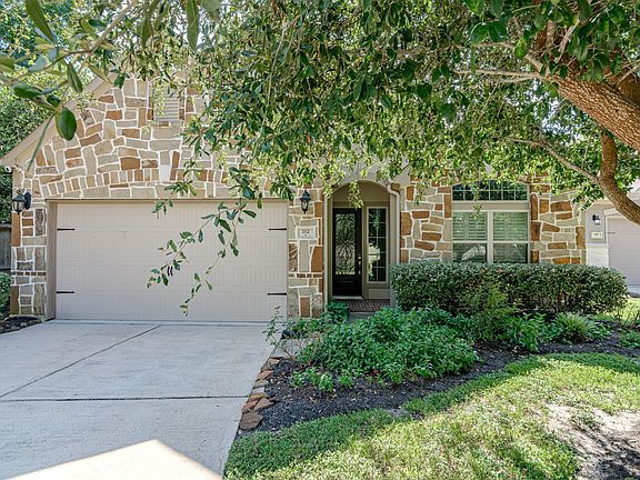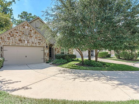 Welcome to the desirable gated community of Timmaron Lakes The Woodlands Creekside Park. This stunning Traditional-style patio home is tucked away on an oversized cul-de-sac lot, surrounded by mature trees and lush landscaping. Inside, you’ll find an open-concept layout with soaring ceilings, rich hardwood floors, a stone fireplace, and freshly painted neutral walls filled with natural light. The chef’s kitchen is designed for both style and function, featuring granite countertops, a subway tile backsplash, stainless steel appliances, a gas range, recessed lighting, and a spacious walk-in pantry. The relaxing primary suite offers a spa-like bath with dual vanities, a soaking tub, and a mud-set shower. Two secondary bedrooms share a full bath, plus a convenient powder bath for guests. Additional highlights include abundant storage and cabinetry, large laundry room, and a two-car garage. Outdoors, enjoy a covered side patio and a large, private backyard. THIS HOME HAS NEVER FLOOD