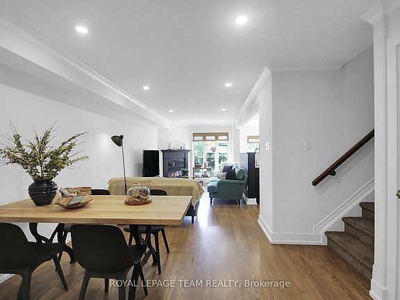 Gorgeous townhome in Stittsville. This beautifully updated family home is located on a private crescent, near schools, parks, transit and shopping. The backyard is a tranquil oasis with a large deck, an oversize gazebo and amazing plants. There are no overlooking neighbours to the rear as this unit backs on to the quiet side of an elementary school. The ground floor is an expansive open plan and has hardwood and pot lights throughout. Entering the contemporary tiled foyer from the garage or front porch, one passes a convenient powder room into a sweeping living/dining room with gas fireplace and tall windows. This is paralleled by the show-stopping modern kitchen with dramatic custom cabinets, white quartz counters, a coveted farmhouse sink and high-end appliances. The bright adjoining breakfast/sitting area leads to the deck through tall patio doors. Upstairs features three generous bedrooms. The principal bedroom overlooks the private back yard. It boasts a walk-in closet and updated ensuite with separate shower and inviting soaking tub. The other two bright bedrooms at the front of the house share a family bath. The washer and dryer are conveniently placed on this level. The basement has been furnished with another complete modern bathroom. There is a large family room and two generous storage areas. This home has all that a family needs.