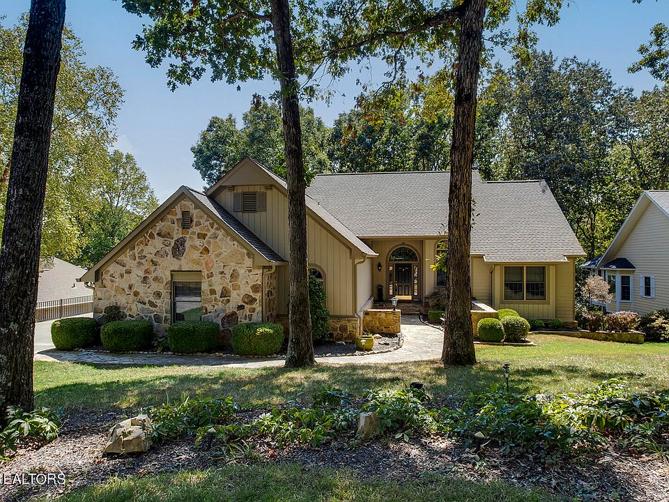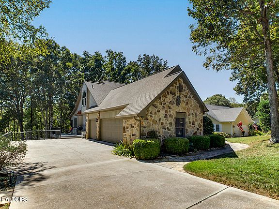 Very peaceful setting. Private backyard. Backyard looks like a park setting. Trees, easy stone walking path to the lake, beautiful plantings. Fire pit. Launch your kayak or canoe from your backyard. Many updates in this home and outside of home. Located in the Tanasi Golf course neighborhood. Centrally located within Tellico Village. Home offers beautiful views of backyard and lake. Lots of windows and high ceiling to take advantage of the view. 4 bedrooms, 3 1/2 baths. Sunroom, open decking and covered lower level patio. Great for outdoor entertaining. Fireplace located on main level as well as in finished basement. Lower level offers Family room with wet bar, guest bedrooms, with bath, recreation room and additional storage. Additional garage for storage located below the concrete driveway parking area. Great for tools, lawnmower, etc. Geothermal Heat and Air system. Very economic. Irrigation system. This home is a MUST see! Very unique. Includes 2 desk in upstairs study. Square footage is approximate. Buyer to verify.