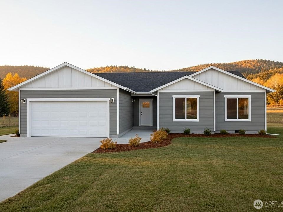 New construction presale on 1.9 private acres in a quiet, wooded neighborhood minutes from I-5. Enjoy peaceful country living w/modern design & quality craftsmanship throughout. 1,850 sqft home offers 3 bedrooms, an office, & 2 baths in a bright, open-concept layout. Primary suite features a walk-in closet & spa-style bath, & every bedroom includes its own walk-in. Kitchen showcases quartz counters, soft-close shaker cabinets, & a large walk-in pantry. Highlights include a spacious great room, office/bonus area, water proof laminate flooring, full window trim, high-efficiency ducted heat pump, solar panels, 320-amp service for future shop, vaulted covered porch, deep two-car insulated garage, extended driveway, close to schools and shopping