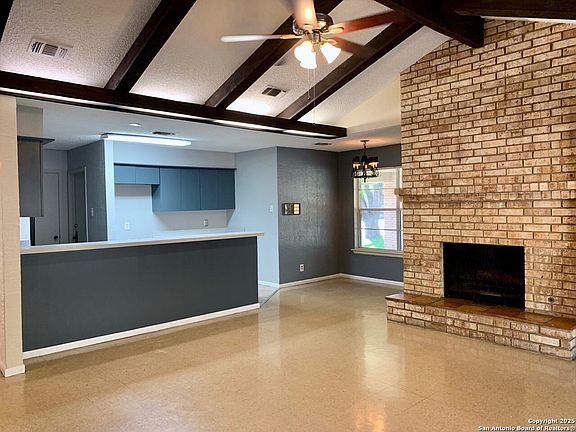 This beautifully maintained duplex is ideally located in the highly sought-after neighborhood of Castle Hills, offering the perfect blend of peaceful living and convenient access to the city. This property consists of two spacious units, one unit features three bedrooms and two bathrooms, while the other offers two bedrooms and two bathrooms. Both units are designed with impressive high beam ceilings and inviting fireplaces, creating a warm and open atmosphere. Each unit includes a covered patio and open floor plans, providing comfortable spaces for relaxation and entertaining. The interiors feature a combination of tile and vinyl plank flooring, ensuring durability and easy maintenance. Modern HVAC systems with gas heat deliver year-round comfort. Residents will appreciate the convenience of two-car carports for each unit and the inclusion of washer and dryer connections. The entire duplex offers a generous total living area of 2,572 square feet. The duplex is within walking distance to an elementary school and the Legacy of Educational Excellence High School, making it an ideal choice for families. Its layout and location also make it perfect for owners who wish to reside in one unit while renting out the other. Pictures were taken in 2019 on one unit and 2021 on the other when vacant.