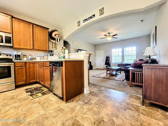 Well maintained, one owner home built by Quality Homes of Currituck in 2015. Welcome to Fox Haven! No HOA, Not in a Flood Hazard & Located on the north side of Elizabeth City with easy access to HWY 17. Enjoy beautiful sunsets and views of the pond from the covered patio or around the fire pit in your fenced back yard. The yard is 1.43 Acres of manicured lawn and perennial landscaping. The home features 3 Bedrooms, 2 Bathrooms, a finished room over the oversized garage with open concept living in mind so everyone feels included, even during large gatherings. The bedrooms are spacious with plenty of closet space and ceiling fans. The primary bedroom has tray ceilings, walk in closet and a private bathroom with a double vanity and linen closet. Perfectly positioned just off the dining area & near the garage, the laundry room provides extra space for sorting, folding & storage. Upstairs is a bonus room perfect for an office, rec room, game room or extra bedroom. Step outside and enjoy the ceiling fan under the extended covered patio or escape to the 14 X 28 workshop which has electricity, custom work benches and shelves. 112 Trinity Trail has something to offer for everyone! Schedule your private showing today!