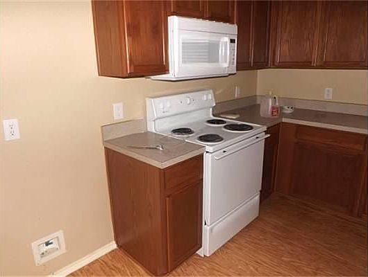 Spacious 3 bedroom, 2 bath home featuring cozy fireplace in living area; island kitchen with microwave; master bath with garden tub; fenced backyard.