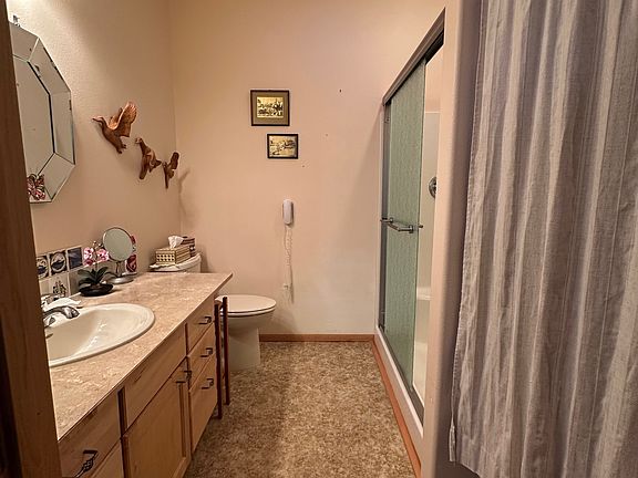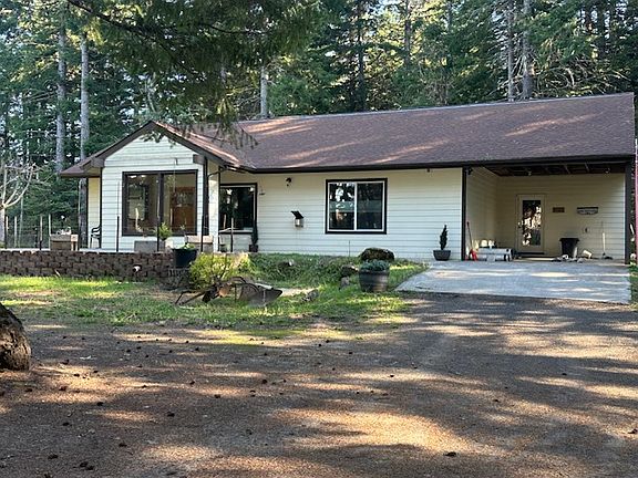 Open concept with fireplace and TV in comfortable living room. Fully equipped kitchen with countertop bar and full-size dining room table adjacent. Master bedroom with private bath and large walk-in closet. Second bedroom, bath and nice office with two desks for remote work. Reliable Starlink internet. Large picture windows and front porch to enjoy the view. Covered carport with entrance to house via large mudroom. Plenty of property and trails to explore. Short walk to scenic views of Mt Adams and the Gorge.