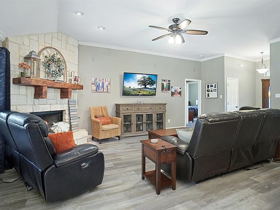 Forget the cookie cutter spec homes that are popping up everywhere in Azle and snag this home with all the character. This updated 3 bedroom, 2 bath, with a dedicated office is on a quiet cul-de-sac down the road from Eagle Mountain Lake, with zero traffic and a spacious well tended corner lot. Recent updates include new granite in the kitchen, a 2 year old HVAC system, a 2 year old gas water heater, new LVP in all main living areas and bedrooms, a new bathtub and new marble countertops in the primary bathroom, and a 2 year old 8 foot cedar privacy fence in the backyard with a double gate. Fireplace in living room is stone with a gas start, and the backyard is large and private, perfect for hosting family or friends.