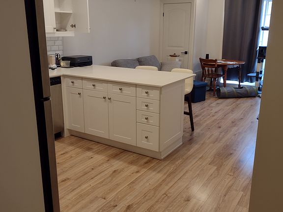 One Bedroom Condo elevated 8 steps from ground at beautiful Union Crossing townhomes! Modern appliances and two leather stools by breakfast bar. In-suite Laundry. Large closets. Rent is $1700 per month. Clean and in move-in condition! Available now! Near E. Ziegler Public School, Grand River Hospital, Chartwell, UW and other places of employment, as well as right next to the Spur Line Trail for your walking/biking enjoyment. One Parking spot reserved near unit. No pets is preferred but up to two small pets allowed. First and Last Month Rent due by Move In Date (one month could be paid a few weeks earlier/when Lease is Signed) . No Smoking Allowed. No Parties Allowed. One Parking Spot Tenant is required to keep the unit clean and let us know if it needs anything.