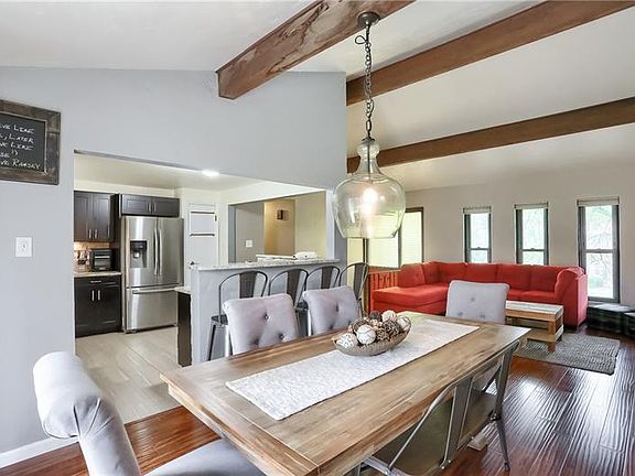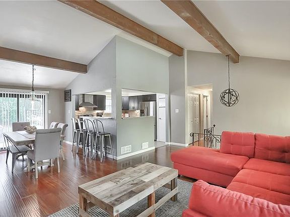 Welcome to this beautifully updated open concept home. There is like new manufactured hardwood flooring throughout the main floor. of this pet free home The kitchen is amazing. It is equipped with newer cabinetry. stunning counter tops, stone back splash and stainless steel appliances. The Master Bedroom is spacious enough for a king bed and has a full bath with walk in shower attached. There is a finished lower level family room with a stone fireplace including gas logs and a lower level powder room off of the family room. The garage is spacious and currently houses a gym with plenty of room for parking two cars. The back concrete patio leads to a flat treed yard. Shed is included.