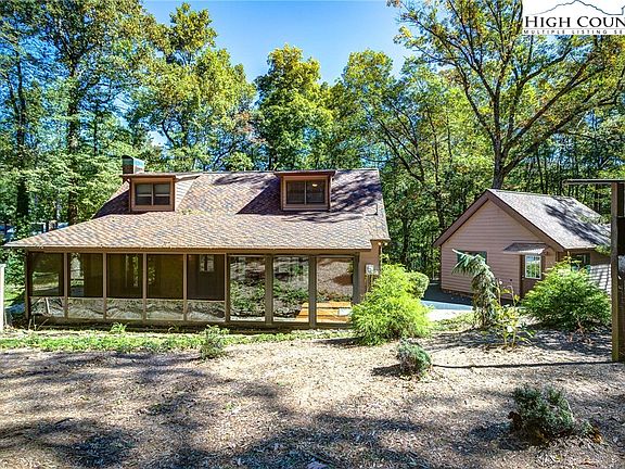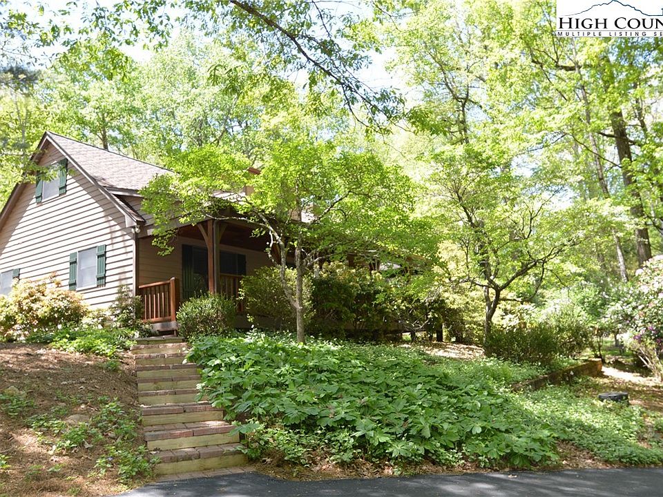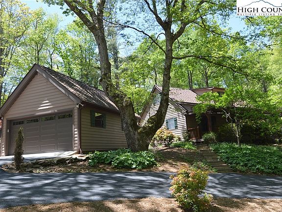 Quaint Mountain Home with Rocking Chair Front Porch on 1.03 ac+/- tucked in the Woods of High Meadows Estates! Features includes Master Bedroom & Bath on main floor, Spacious Living Room with Gas Log Fireplace, Open Kitchen with Glassed in Dining Room and attached Screened in Porch. Second level features 2 Bedrooms divided with Full Bath. There's a Full Unfinished Basement with Laundry and walk out. Exterior Features includes a 2 Car and a 1 Car Detached Garage, Asphalt Circle Driveway, Stepping Stones and All Natural Landscaping. Enjoy the Tranquil Meditation Garden and all that Nature Provides! This is the Perfect full time or Second Home. Low Maintenance! Home is Generator Ready (8000 watt Generator will run the home except for AC). Whirlpool Kitchen Appliances, Granite Countertops & Tiled Backsplash, Wood & Tile Floors(Carpet in Bedrooms) Excellent Location, near the Blue Ridge Parkway, Stone Mountain State Park, Trout Streams and Wineries! Take a Look today! One of a Kind! Club Membership available upon Approval.