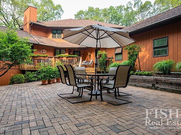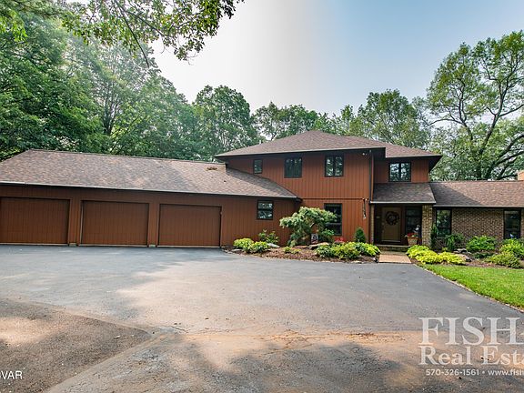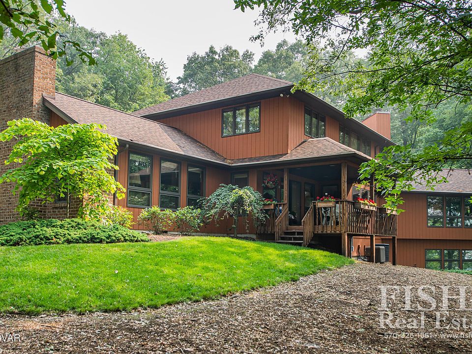Spectacular, custom designed Contemporary style home located on 9.6 acres in Loyalsock township. This stunning home offers spacious, light filled rooms with views from every window. You'll find a beautiful living room with marble fireplace and formal dining room that opens to the covered deck. The kitchen has been beautifully remodeled with granite countertops, custom cabinets, wet bar, and very spacious walk in pantry. The family room is adjacent to the kitchen and features a double sided fireplace, wood flooring, and opens to the rear deck and patio.