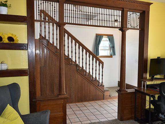 Spacious and roomy house full of character & charm in great location across from city park! Oak flooring, beautiful natural woodwork, open staircase, spacious kitchen with breakfast bar. Open living/dining rooms, large bedrooms, main floor laundry. Deck off kitchen in fenced yard great for children and/or pets. New central air in 2024, water heater in 2025. Extensive foundation work in 2024. Fireplace has not been used in year, so as is.