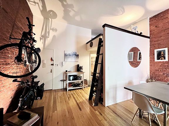 High ceilings, hardwood floors , deco fireplace and exposed brick