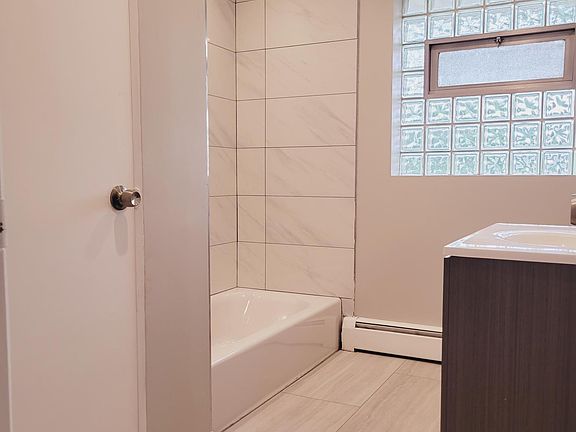 This is a 2 bedroom. 1 full bath with ENCLOSED GARAGE. Spacious fully remodeled apartment. Well maintained exterior and interior grounds. Open floor plan with contemporary neutral colors freshly painted. Fully Remodeled Brand New kitchen, appliances, bath, flooring, pot lights, new windows! Laundry onsite. Tenant only pays electric. No pets allowed.