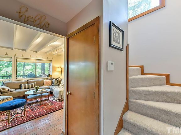 So close, so cute, so affordable! 15 minute bike to UNC's Old Well & 12 minute walk to Carrboro Farmer's Market. This 2 bedroom 2 full bath contemporary located in a cozy little neighborhood is what you're looking for. Open plan first floor w/ wall of windows to the huge deck - like you're living in a tree house! Brick floor & woodstove really warm it up w/ lots of shade to keep you cool in the summer. Bright bathrooms too! 2 parking spots, front porch and attached storage makes it all work. Come see it!