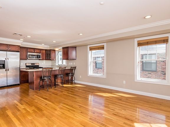 Built in 2011, this beautiful condo is completely turnkey. Large open concept is perfect for entertaining with tray ceiling and crown molding throughout the living/dining room. Kitchen has granite counters, custom wood cabinets with soft close drawers, stainless steel appliances and peninsula. Full bathroom with double sinks and additional ½ bath for guests. 2 large bedrooms, sizable mudroom area, 2 car parking, basement storage, central AC and in unit laundry. Great location that is close proximity to town center, Mystic river and multiple bus stops including access to the 325 express bus into Boston. Also close to shopping, Assembly Row and easy highway access.