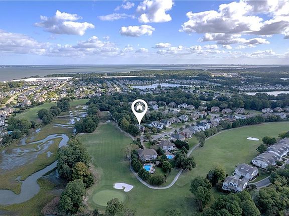 Calling all golf lovers! Overlooks the 15th fairway with beautiful views of the Nansemond River. Featuring hardwood floors, custom millwork, and abundant natural light, this home offers a gourmet kitchen with gas cooktop, center island, and stainless appliances that opens to a keeping room and breakfast area surrounded by windows. Multiple living spaces each feature a fireplace for relaxing or entertaining. Includes a main-level bedroom with en suite bath, luxurious primary suite with sitting area. Home offers two large screened porches and a third-floor bonus room with half bath. The three-car garage includes a golf cart bay and drive-thru third bay with backyard access. Generac generator, wraparound porch, and mature landscaping complete this stunning home.
