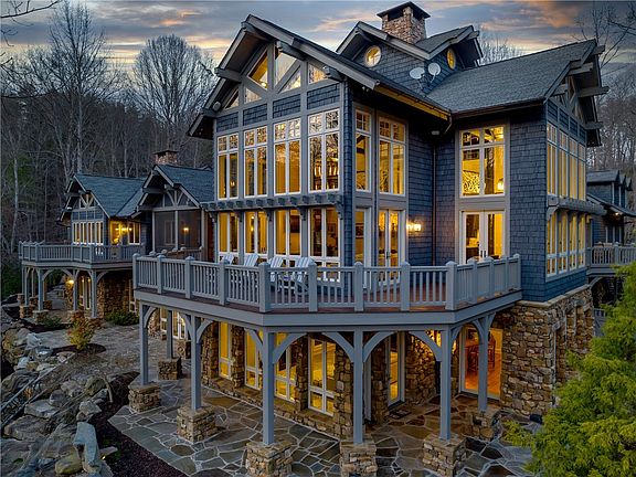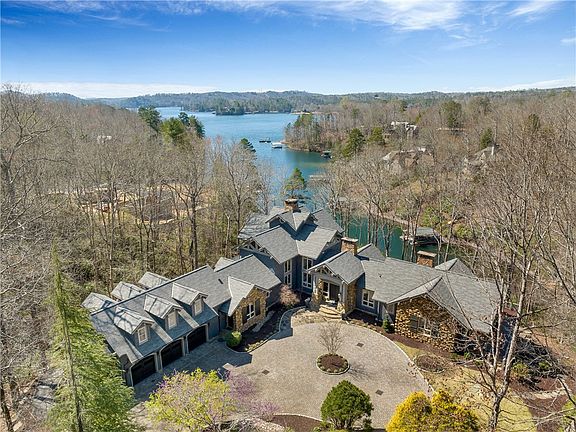 When cruising along the northern shorelines of Lake Keowee, you notice an unparalleled European style crafted home meticulously carved into the 450+ft of shoreline is this estate situated in the heart of The Cliffs at Keowee Vineyards Community. Encompassing 3.4 acres in a private park like setting you will travel down a driveway surrounded with mature landscaping, broad parking areas and the greeting waterfall, spans this custom home sculptured by Morgan-Keefe Builders. With meticulously appointed renovations, this home provides a timeless appeal that will be marveled and appreciated. Entertaining and hosting family and friends for a stay are easily accommodated; 5 bedrooms, 6 full bathrooms, and 2 half baths, private quarters for each guest is effortlessly set. Entering the residence, you will immediately notice the hand forged spiral staircase stately positioned from the flagstone floored foyer flowing into the gourmet kitchen w/ dual islands recently finished with Cambria quartzite tops. On the opposite side, the primary bedroom includes 1of the 6 resurfaced stoned fireplaces in the home, an entry to the exterior balcony, a rejuvenating primary bathroom with an abundance of natural light and space for the freestanding tube, shower and walk-in closet w/ multiple niches and shelving for displaying. The screened porch adjacent to the foyer has lined walls of raw natural tree bark, fireplace, wet bar, cold storage, and lake and nature views from the sitting area. The study room for the home is detailed w/ crafted coffer ceilings, a decorative carved fireplace and built-in bookcases on both sides of the fireplace. To complete the primary level, it is impossible not to notice the rarely found wormy chestnut flooring throughout. Entering the lower-level living space the eye is quickly drawn to the old-world tavern style doors for the conditioned 300 wine bottle storage display that greets you to a large recreational space that includes a full bar constructed of reclaimed planks from a Caribbean ship wreck, fireplace, 3 additional full bedrooms/bathrooms a recently added new half bathroom, laundry and lake entry area w/ custom built-in lockers. Completing the lower level is the Tartan Plaided, simulator room equipped w/ the Full Swing Pro-Standard golf simulator programmed w/ the new Tiger Woods package subscription and additional sporting games. Completing the interior of the property is the surprising and stunning captains walk ideal for viewing evening sunsets, reading or enjoying a glass of your favorite beverage and the retreat space above the 3-bay garage for playing and sleeping which includes a full-bathroom. Additionally, it is easy to access any level of this home from the built-in elevator. The same attention of planning and design was envisioned for the exterior living spaces as equal to the interior living spaces. Looking out of this west facing, protected lake cove, you see and feel the beauty of Lake Keowee from the private covered boat dock equipped w/ 2 covered jet-ski ports, speaker system, water/power, boat lift and a large platform section for gathering, and swimming. When leaving the dock you will notice the 2 natural waterfalls located at the end of the draws coming into the lake on both sides of the property. The lakeside stoned fire pit is just steps away from the dock and the newly installed stone patio frames the entire lower levels exterior that includes the perfectly positioned hot tube. From this architectural masterpiece you can quickly access the award winning Tom Fazio championship golf course, practice facility, renovated Vineyards clubhouse, full-service marina, swimming pool, fitness center, tennis/pickle ball courts, The Lake House restaurant, and The Vineyards Equestrian center. Many upgrades and improvements are located in the supplements such as new HVAC, roof, and full home automation systems. The Cliffs Membership is available with this property giving you access to all seven communities.
