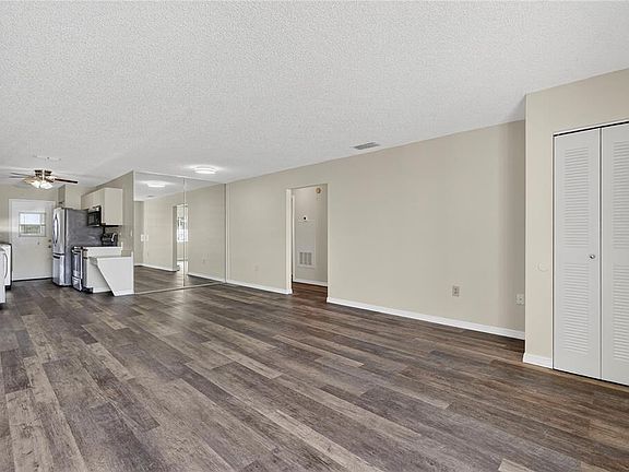 Tucked away in the waterfront community with direct access to the Chain of Lakes (Lake Smart), Unit 112 is a stunning, updated 3-bedroom, 2-bath condo that combines low-maintenance living with modern luxury and style. Step inside to discover luxury vinyl plank flooring throughout, complemented by the kitchen that includes a complete set stainless steel appliances with a pair of rose gold Samsung washer and dryer. The open-concept great room flows seamlessly from the cozy living area and the dining space, creating an inviting hub for entertaining or everyday living, plus a back door opening to the 9x23 screened-in lanai perfect for morning coffee or unwinding in the evenings. The primary suite boasts dual closets. The split-bedroom layout offers two additional generously sized bedrooms and guest bath, ideal for family, guests, or a home office. Thoughtful upgrades extend throughout, including light fixtures, ceiling fans, Enjoy the heated community pool, boat slip, dock, and direct lake access to Lake Smart, part of the beloved Chain of Lakes. Each unit includes two assigned parking spaces conveniently located in front of the home, with additional guest parking near the clubhouse. Soak in low-maintenance living with an HOA that covers roof maintenance, exterior building care, beautifully landscaped grounds, road maintenance, and pool and dock upkeep. Take advantage of the public boat ramp just across the street onto Lake Conine or explore the new Lake Conine Nature Park, just 0.5 miles away, offering walking trails, picnic areas, and outdoor recreation. Quick commute to shopping, dining, Legoland, and located just minutes from HWY 27 with easy travel to both Tampa and Orlando.