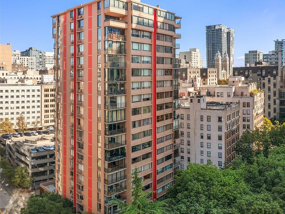 Enjoy western city, sound, & distance mountain views high atop First Hill from this bright corner unit. The two-bedroom unit boasts new wide-plank flooring and paint. Master Suite with lots of closet space. Second Bedroom has custom office. Large view balcony, A/C in Living/Dining room, Fireplace, W/D in the unit, secured Parking & Storage. Resident amenities: On-site manager, Clubhouse, Gym, and outdoor Patio w/BBQ grills. Great location with in-city living, shopping, dining, and theater… experience all downtown living has to offer!