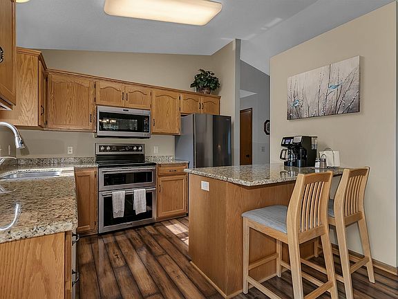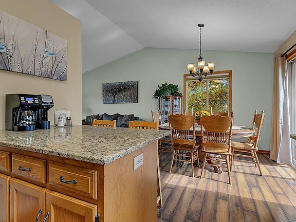 Located at the end of a quiet cul-de-sac in Waite Park, this beautifully maintained home features a manicured yard with an in-ground sprinkler system and sharp curb appeal. Inside, you’ll find a bright, open great room with vaulted ceilings and large windows, a kitchen with granite countertops, stainless steel appliances, and laminate wood floors, plus a dining area that opens to a spacious deck overlooking the backyard. The home offers three bedrooms plus a den/exercise/flex room, and the lower level includes a large family room. Enjoy relaxing on the expansive patio with large planter boxes, shaded from the afternoon sun. Recent updates include kitchen appliances, furnace, water softener, water heater, and driveway, making this home move-in ready and worry-free.