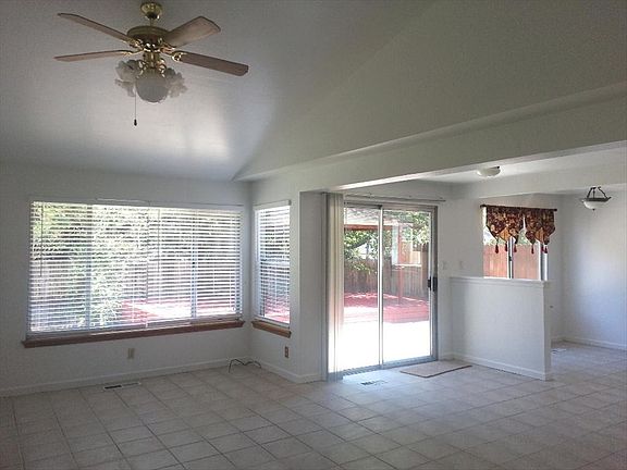 This home features open floor plan with vaulted ceilings, tile flooring in the living room, dining room and kitchen, recessed lighting in kitchen, new carpet, large master bedroom, A/C and a private fully sprinkled backyard with covered deck plus storage building. This home is conveniently located off of Robb Drive close to schools and shopping, parks and freeway access.