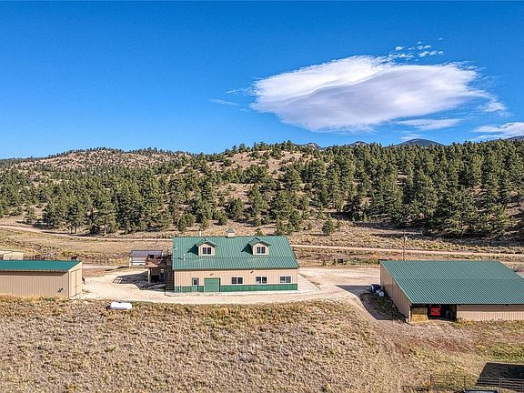 Discover a rare 70-acre equestrian estate nestled in the heart of Westcliffe, CO. This 1,800 sq ft barndominium seamlessly combines rustic charm with modern amenities, featuring two bedrooms and three bathrooms atop a fully equipped 5-stall barn. The interior boasts hardwood floors, cathedral ceilings, and a well-appointed kitchen, while the master suite offers full bathroom with tub & shower. Designed with the equestrian enthusiast in mind, the property includes a heated and insulated barn with five 12x12 stalls, a tack room, and additional metal outbuildings. These comprise a 40x12 RV/Horse Trailer storage with a concrete pad, a 50-amp RV hookup with sewer clean out, and a greenhouse. A 100x200 roping arena with a return alley, Antelope Creek, a spring-fed pond, and panoramic views of the Sangre de Cristo mountains enhance the property's allure. This exceptional horse property is close to national forest - Experience the perfect blend of comfort, functionality, and natural beauty in this unparalleled Westcliffe retreat.