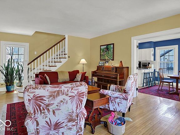 Located in the heart of the Elm Heights neighborhood, blocks from the Indiana University campus, this delightful Dutch colonial home offers 5 bedrooms and 3 full baths. The nicely landscaped corner lot features many perennial plants, and the beautiful flagstone patio surrounded by a wood privacy fence provides a perfect space for both outdoor relaxing and entertaining. This comfortable and welcoming home features a formal living room enhanced by a gas-log fireplace, a cheerful kitchen with breakfast bar, dining area and appealing granite counter tops, and a light-filled dining room with large windows bringing in natural light. There is a sunroom off the living room that has a private entrance. This room is currently being used as an office. At the rear of the home is the impressive primary bedroom featuring a private rear deck, an immense walk-in closet, a separate sitting area, and a luxurious en-suite bath with a jetted tub and separate shower. Upstairs provides 3 more sizable bedrooms and the 2nd full bath. This home has 2 separate basements. The lower level of the original home offers a 5th large bedroom with a private entrance making it perfect for a guest suite or rental as there is a full bath as well as the laundry room in this space. The lower level under the addition has access into the garage from the main house, storage/workshop space, and an exterior door. For a home of this era, closets are more than plentiful for your in-house storage needs. Recent interior improvements: attic insulation, new front door & storm door, furnace humidifiers, new washer & garbage disposal, and many rooms were repainted. The fireplace was updated with a new surround, gas logs, and a remote. The exterior improvements: front porch handrail and limestone slab, retaining wall, wood picket fence, flagstone patio, and 2 garden beds. They also had the chimney top repointed and repaired. This is an opportunity to live in one of Bloomington's nicest neighborhoods near downtown ameni
