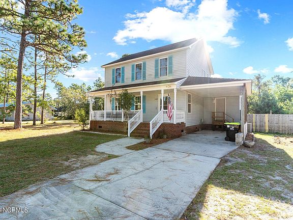 Beautiful home with 3 bedrooms, 2.5 bathrooms, carport and large, fully fenced backyard. There is a large eat in kitchen and a formal dining room. The living room has just been repainted and it has a propane fireplace for the chilly winter evenings. There is a half bath on the first floor for convenience. Upstairs you will find the primary bedroom with its own private bathroom, two more bedrooms and another full bath There is no carpeting in this house and new flooring has been installed in the living room and dining room. New Microwave and Dishwasher. The large laundry room with storage has access to the carport on the front of the house, making unloading groceries a breeze with easy access to the kitchen, and it also has a door to the backyard. Don't miss the great screen room on the back of the house off the dining room. Boiling Spring Lakes has a community center, basketball, playground, Spring Lake Park (only .3 miles from the house) with concerts and activities and is close to Southport and Oak Island. Check it out today!