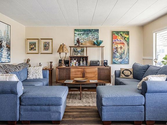 Park management offering 6 months free space rent to qualified buyers. Beautiful 2 bedroom 2 bath with light flooded living room with its wall of windows and adjacent enclosed patio which adds approximately 100 sq ft. Spacious kitchen with awesome Wedgewood range/oven and quartz counters is open to the dining room. Bathrooms have been remodeled with high end materials, one with a walk in shower and the other with a soaking tub. Many assorted family fruit trees. Recently renovated party sized clubhouse has a kitchen, lots of seating areas and a large screen TV. Common areas include pool, spa, b-b-que area, dog park, library/computer room, weight room and even a laundry. Crestview Hills is wonderful 55+ community close to town.