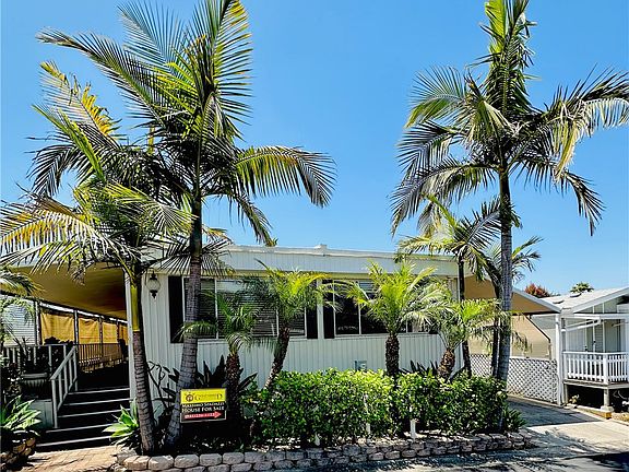 Adorable, spacious 2bed/2bath 1971 built Mobile home with large Master bed dimensions 14X12, Secondary Bedroom Dimensions 11X10, dining Room Dimensions 12X10 adorned with a beautiful built -in mirror and cabinets as well as upgraded baseboards, Family Room 16X12, 10X6 big kitchen with tons of cabinets, Living room 24x12 Metal roof doublewide 60X24 Located in the heart of Fallbrook, surrounded by rolling hills, luscious vegetation for a quiet living. Enjoy the cozy and artistic community with all the modern amenities nearby. The back yard will certainly surprise you with all its foliage and mature greenery. Cordial management staff, age requirement over 55, other/s only over 18 a rare find. Large, covered deck to enjoy the outdoors, priced to sell!! A nice big sheds for storage and refrigerator included!