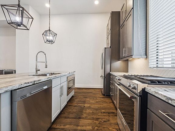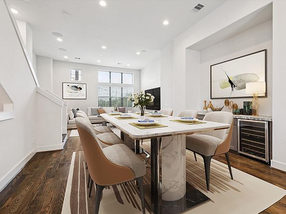 Welcome to Houston’s premier luxury living in one of EADO's most desirable gated communities! This townhome offers an open-concept layout with wood flooring, abundant natural light, and a balcony showcasing stunning Downtown skyline views. The gourmet kitchen boasts marble countertops, stainless steel appliances, gas cooktop, under-cabinet lighting, breakfast bar, and prewired surround sound in the living area. The primary suite features double vanities, a freestanding soaking tub, and a tiled shower. Just steps from Discovery Green, Minute Maid Park, Toyota Center, and the GRB Convention Center—minutes from dining, shopping, and entertainment. Perfect for professionals, families, or your next investment.