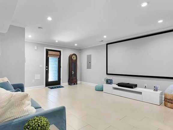 - Projector screen in the living room is also yours to use! Great for movie nights, sports viewing, and even video conferencing for work.