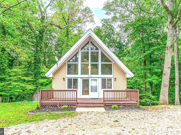 Discover your dream escape at 1120 Golden West Way in Chesapeake Ranch Estates. Nestled in a tranquil wooded setting enjoy the perfect blend of nature and relaxation in this delightful chalet-style home featuring 2 bedrooms and 2 baths alongside a subtle open concept layout. This cozy retreat is designed for modern living with a touch of rustic elegance. As you enter, you’ll be welcomed by soaring vaulted ceilings and expansive windows that accent an inviting living area bathed in natural light, showcasing subtle wooden tones that create a warm, serene atmosphere. The spacious blueprint seamlessly connects the living, kitchen and dining areas, making it an ideal space for entertaining. The quaintly designed kitchen boasts stainless steel appliances with ample counter and cabinet space, as well as laundry area for convenience. With one bedroom and bath on each level you have a sense of privacy within. Step outside onto the expansive front deck, where you can savor your morning and evening beverage while listening to the sounds of nature and peaceful surroundings with plenty of room for entertainment. The halfmoon driveway provides ample parking area for large gatherings and multiple vehicles. The home features an unfinished basement area as well with exterior entrance ideal for storage or the creative thought for expansion of the home. Appreciate the newer roof and septic system as well to ease your mind. This home is just a short drive from the stunning beaches of Chesapeake Bay and local parks with direct access to nearby trails for hiking and biking. Whether you’re seeking a permanent residence or a weekend getaway, this chalet offers the perfect blend of comfort and adventure. Don’t miss your chance to own this slice of paradise—schedule your showing soon while you can!