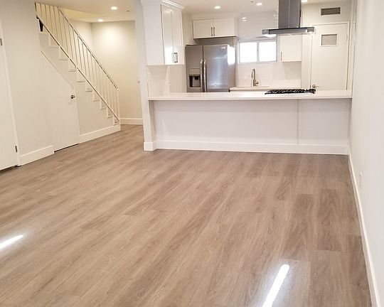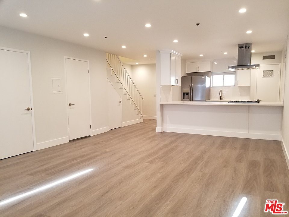 This beautiful remodeling 3 bedroom 3 bathroom townhouse style 5 unit apartment located in the heart of Koreatown. All floors are new wood flooring throughout and living room & kitchen are new LED recessed lighting. Kitchen has brand new luxury stainless steel appliances: refrigerator, dishwasher, under-mount counter top 5-burner gas range, and fancy food fan ventilation. Kitchen also has wide opening quartz counter top and oak white shaker cabinets. Bathrooms are all new, with a beautiful bathtub featuring glass shower doors, a lighting mirror, lavatory cabinets and a Kohler toilet. Laundry room is equipped with an all-new LG drum washer and dryer in unit. Air conditioners and heater are new. Fully secured building, with intercom entry system and 2 tandem parking spaces inside the gates. Landlord pays water & trash. This unit has an open floor plan with plenty of sunlight entering through the southern side of this wonderful unit.