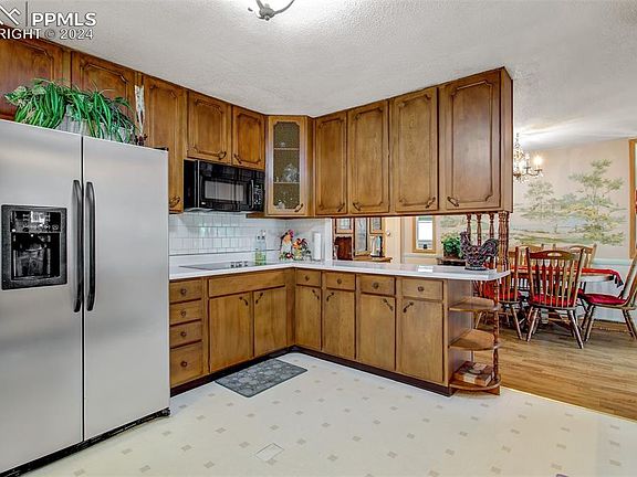 Welcome to this charming 1965 ranch-style home, nestled on a corner lot in a peaceful cul-de-sac. With 2,900 square feet of living space, this 3-bedroom, 3-bathroom home offers a warm and inviting atmosphere. The original layout features cozy, well-defined rooms that give each space its own character, including a welcoming living room with a fireplace, perfect for gathering with loved ones. The remodeled basement adds extra living space and features a second fireplace, ideal for cozy nights in. You’ll love the front courtyard that greets you at the entrance and the sunroom with large windows framing breathtaking views of Pikes Peak. The expansive backyard is perfect for outdoor gatherings or simply enjoying the beauty of Colorado, offering ample RV parking space, a concrete slab, and an electrical hookup ready for your hot tub or sauna. This home blends classic charm with modern comfort in a serene setting.
