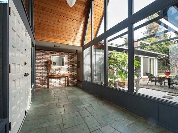 Stunning custom contemporary a-frame with 3 bedrooms including a master suite, 2 remodeled bathrooms, grand entry with slate floors, family room with gas fireplace, 2 car garage with interior access and separate parking pad, 2 zone central heating, sunny eat-in kitchen, living room and dining ell, newer roof, serene, interior courtyard, and gorgeous backyard with new turf and automatic sprinklers. Unique property located on a small lane off Kelvin Rd. (technically still Kelvin Rd.) Newer carpet, landscaping, very pretty. Refrigerator in garage stays.