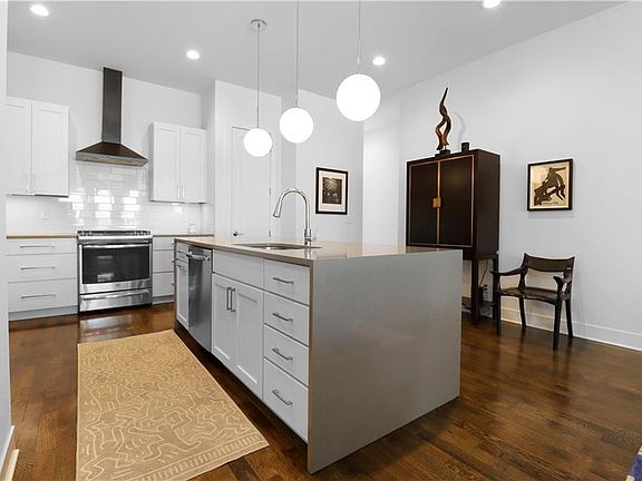 Next-to-new 3-story classic Edward Franklin Build blending timeless historic character with elevated modern finishes. Thoughtfully designed to complement the charm of Columbus Park neighborhood, this meticulously maintained home offers both style and substance in on the of city's vibrant locations. Step inside and be greeted by soaring ceilings, rich real hardwood floors, and a grand staircase that anchors the open-concept main level. The living room is as inviting as it is elegant. the chef-inspired kitchen, complete with a gas range, oversized island, quartz countertops, under-cabinet lighting, soft-close drawers and doors, and a spacious pantry. Large dining room directly next to the kitchen offers much entertaining space. A versatile bedroom on the main level is perfect for guests, a home office, or flex space. Upstairs, the primary suite offers a true retreat with a large bedroom, spa-like bath with glass-enclosed shower, double vanity, and a walk in closet. Two additional bedrooms share a jack-and-jill style bathroom, walk in closets, and the conveniently located laundry room makes everyday living a breeze. Ascend the spiral staircase to the third floor ideal for entertaining or unwinding on the private deck with amazing views of the city. Outdoor you will find pet-friendly artificial turf, a concrete patio, and a walkway leading to the two-car detached garage, which includes a car charger.
