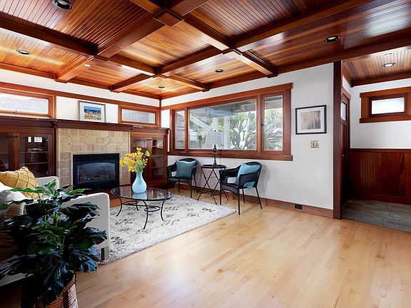 Custom Craftsman home in Banana Belt was extensively remodeled in 2001 showcasing rich Mahogany ceilings, wainscoting and builtins w/ Redwood accents and beautifully refinished Maple floors. Warm up with a good read in front of the gas fireplace accented with Canadian tile. !n the kitchen granite & marble bakers countertop will keep you creating for hours! The farm sink accommodates your larger pots after you unleash your inner chef. The ground floor bedroom has a builtin wardrobe and french doors out to a sunny deck. The ground floor full bath has custom porcelain frog tiles will make your heart leap. The spacious family room has built in speakers and opens onto a sunny rear deck. The primary bedroom ensuite is on the upper level & features a huge walk in closet, large Corian shower with dual shower heads, & a separate office leading to a private deck.The ADU (pictures 25-31) has high ceilings, a gas insert fireplace, kitchen, bedroom & laundry/office. Close to Beaches,Golf,Schools!
