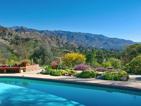 One of those rare jewels hidden away off of a private lane way is waiting for that special buyer. Long term owners have taken loving care of their property for over 40 years but it is time for someone to come in and give the home a new look. A verdant lanai area greets you as you walk towards the front doors and into the home. The dining area faces out to the lanai which makes it feel like a part of the gardens. The home is a 3 bed and 2 bath with a family/tv room on the other side of the living room fireplace. The living room area opens out to the pool and some of the best views in all of the Ojai valley. The property meanders down a gentle slope where there is a mini barn at the bottom of the property. There are numerous outside areas for sitting and relaxing while you capture the beauty of the Topa Topa's. The property is close to hiking trails and only minutes into the village of Ojai. Views and privacy are all yours in this place called paradise.