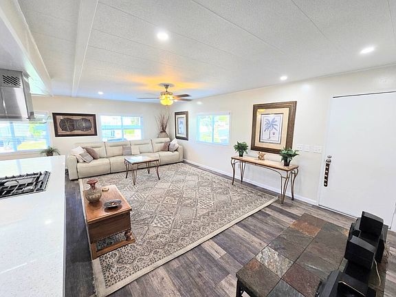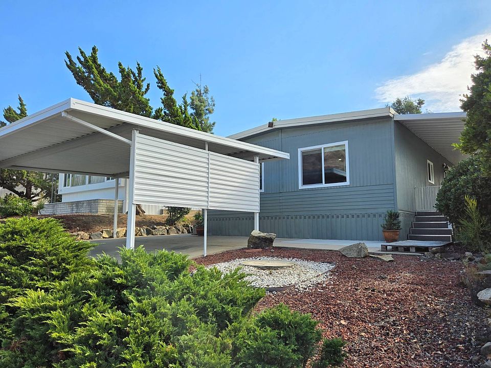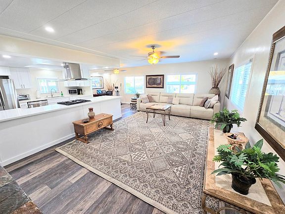 This Lovely Luxury Remodeled home has Spectacular views of flowers, plants and trees from the private back porch and yard. The master bedroom has sliding glass doors giving you access to the back porch. There is another large side porch with brand new indoor/outdoor carpet that can be accessed from the formal dining room area. These 2 porches give you many options for BBQ areas, exercise areas or sitting areas. The front of the home has beautiful views of the local mountain and has a low maintenance yard along with a carport with convenient side by side parking. This home has central heat and air conditioning. The roof has an upgraded insulated capped roof that has been recently serviced and should never have to be replaced. There is also a storage shed on the side of the home. The interior of the home is absolutely gorgeous with Luxury Vinyl Plank flooring, and has been painted with pastel colors throughout giving this home a very relaxed and calm feeling. Tinted Double pane windows and sliding glass doors look great and are very energy efficient. This home was remodeled and has a very spacious and open floor plan. The kitchen has been modernized with plenty of cabinets and a large kitchen island and has high end stainless steel kitchen appliances. The living room area is very spacious and has great views from the front windows. There is a formal dining room area that will accommodate a large dining room table or could be used as a den area or easily converted into a 3rd bedroom. The master bedroom easily accommodates a king size bedroom set and has a closet along with an additional walk-in closet. It also has a fan/light combination. There is a separate vanity area near the walk-in closet. The bathroom has a low profile shower and beautiful vanity with quartz counters. The guest bathroom also has a newer vanity and quartz counter tops and has a tub and shower. Recessed LED lights have been installed throughout the home and are very energy efficient. There are 3 fan/lights, one in the living room, one in the dining room and one in the master bedroom. There is a coat closet conveniently located near the main entrance. The washer and dryer area is next to the den area and will fit a standard size washer and dryer. Washer and dryer do not convey. This home looks and feels very comfortable and has been very well maintained. This home would be perfect for entertaining large groups of people. The location of this home gives you daily afternoon breezes to enjoy your porches and views. Please call listing agent for best service. About Pepperwood Park: Pepperwood is a 5-star adult community offering resort-style amenities, including a historic Victorian mansion as its clubhouse. Inside, you'll find a modern kitchen, great room, billiards, tea room, heated pool, jacuzzi, fitness center, and a lovely library. The park's tree-lined streets, flowers, and well-kept grounds make it feel more like a residential neighborhood than a mobile home park. The clubhouse is also available for weddings, family reunions, and special events. Residents must be 55+, with additional household members aged 45 or older. Conveniently located near shopping, restaurants, and just minutes from I-8 and HWY-67, this home offers both comfort and community living. Serial #'s 0240x/xu Information deemed reliable but must be verified.