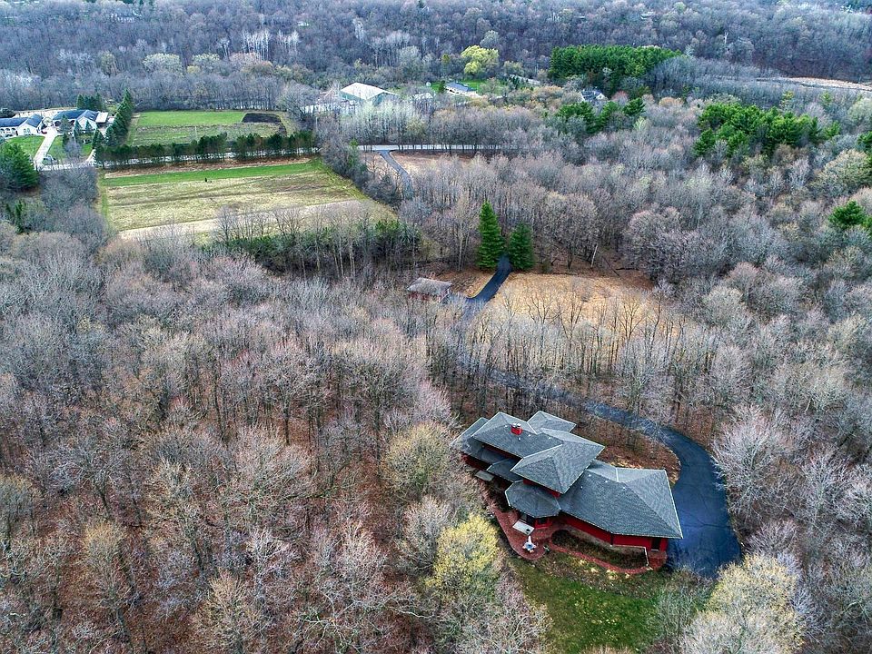 Impeccable, craftsman style home situated in the rolling forest land near Holy Hill has over 27 acres and beautiful, colorful native prairies that welcome you along the winding driveway. Inviting, warm interior finishes include hardwood floors, durable neutral tile, & slate tile kitchen backsplash. Cozy great room has a natural fireplace, wet bar, and built-in bookcases. The kitchen features a gas cooktop & SS Liebherr refrigerator. Luxury owner's suite has a walk-in closet, custom built-ins, fireplace, and private bath. There is a stylish, no curb, walk-in shower, dual sinks, champagne bubble tub, and heated floor. Oversized garage has a staircase to the basement. Large loft on the upper is a great office or playroom filled with lots of natural light. Rec room with full bath in LL.