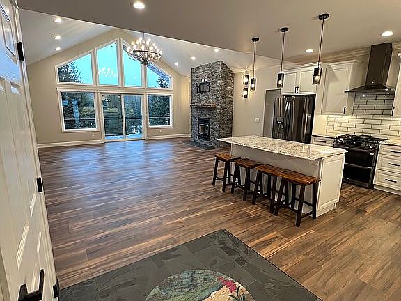 NEW CONSTRUCTION HOME FOR SALE! This gorgeous new construction wrapped with Everlast Composite Siding(with a lifetime warranty) gives you all of the amenities of living in town, as well as the sought after back country views. The house boasts a large 168 sqft. covered back porch decked with Composite Trex Boards that is great for taking in the stunning sunsets, Northern Light activity, viewing wildlife, entertaining, or just relaxing. Enjoy the quiet neighborhood and the large 234 sqft. covered front porch accented by aluminum ceiling underpinning, illuminated by canned lights with stamped and dyed concrete floors. The custom build sits on 2.31 acres of pristine Alaskan land, in Homer. The house has 1,911 sq ft of living space with an attached 560 sqft garage. This open concept home has 3 bedrooms, each with beautiful wooded views, 2.5 bathrooms with slate floors and baseboard and a large home office. The home is serviced by natural gas, with an efficient radiant floor heating system subsidized by a stunning wood burning fireplace, with stacked stone and a mosaic featuring black slate and fireweed. The kitchen countertops and island boast elegant granite from Alaska Marble & Granite. Touches of custom design are provided in the entryway, in front of the fireplace, kitchen backsplash, and throughout each bathroom with one of a kind tilework by the incredibly talented Tierra Tile. LG Black Stainless Steel appliances are powered by natural gas throughout the home. The house is floored with Life Proof flooring and is ready to stand up to the Alaskan lifestyle. All bathroom feature black slate tile, modern fixtures, and matte black accents. The Master bath is pure luxury with an oversized walk in shower, custom tilework, water closet, marble countertops, and free standing soaker tub. Wise Electric provided the lighting inside and out with modern fixtures and dimmable features. 4.7 miles away from in town Homer, with well maintained roads during the winter months. (The mosaics by Tierra Tile are included in the photos, and will remain covered for protection until the home is sold. Of course you can view them in person for showings upon request. More photos/videos in the links below: https://www.facebook.com/61556137386616/posts/122118655460204579/?vh=e&mibextid=WC7FNe https://m.facebook.com/story.php?story_fbid=122117188484204579&id=61556137386616&mibextid=WC7FNe