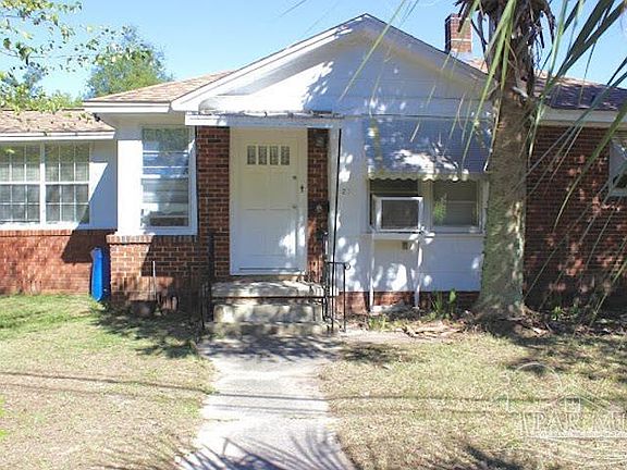 This cute brick 2/1 on a large fenced corner lot with a one-car detached garage/workshop & lean-to provides several possibilities with a bit of TLC! It can serve as an owner-occupied home or provide additional income as a great rental or a perfect size for an Air BnB with a spacious yard that could provide a great area for vacationers to enjoy! The roof is only one year old & the owner has connected to public sewer. A new water line has also been added. The original hardwood floors are gorgeous & hard to find in most homes. A spacious living room separates the kitchen from a bright & airy bonus room that could be a formal dining area, a 3rd bedroom or an office. Even though the home does not have a central HVAC system, it does have a floor furnace & window AC units plus a whole house fan that efficiently pushes air throughout the structure. On the other side of the kitchen is an all weather porch with jalousie windows that were popular back in the day along with the gas water heater and space for a table & chairs to relax & enjoy the view. The bathtub has been refinished along with new decorative flooring & the kitchen features a nice gas range. If you like lemons, figs, & pecans, you can delight in your very own yard of produce as well! The house is centrally located to so many amenities...walking distance to WalMart, the post office, restaurants, the spacious grounds of a park & community center with a playground, paths, basketball courts, picnic areas & even a huge dog park! In 10 minutes or less, you can also drive to the NAS Pensacola main gate & the VA hospital plus the commissary and NEX. It will be easy to sit in your yard and watch the Blue Angels fly overhead on practice days as well! All of this for a very affordable price and so many ways to use & enjoy this property!