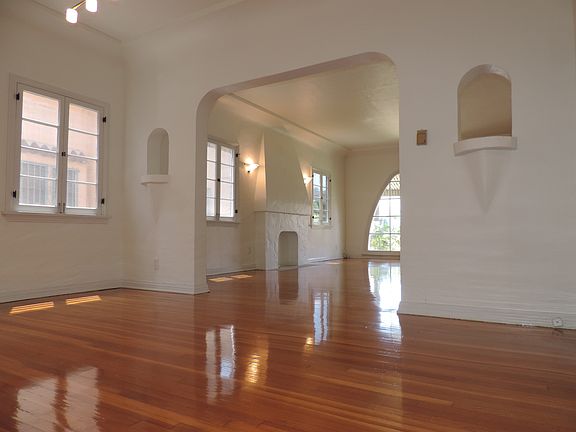 Your new home could be a Spanish style duplex lovingly restored to its original charm in a quiet neighborhood with hardwood floors and French windows throughout. This freshly painted, lower unit boasts nearly 2,000 sq.ft. of living space. A huge apartment, it has 3 large bedrooms and 2 bathrooms. Enter through the grand living room with faux fireplace; walk through the formal dining room and breakfast room before entering the white tiled countered kitchen. Laundry hookups are conveniently located just inside the rear entrance. A gas range is supplied in the kitchen; you bring your own refrigerator. The unit also comes with a private enclosed garage for one vehicle. Additional parking is available on the street. LOCATION 1120 South Sycamore Avenue Los Angeles, CA 90019 Located in the Miracle Mile section of Los Angeles we are a few blocks west of LaBrea Avenue just south of Edgewood in a very desirable neighborhood. Showings are by APPOINTMENT only. Originally priced at $3,650/mo now. Save $200/mo. Now priced at $3,450 REDUCED FOR IMMEDIATE MOVE-IN
