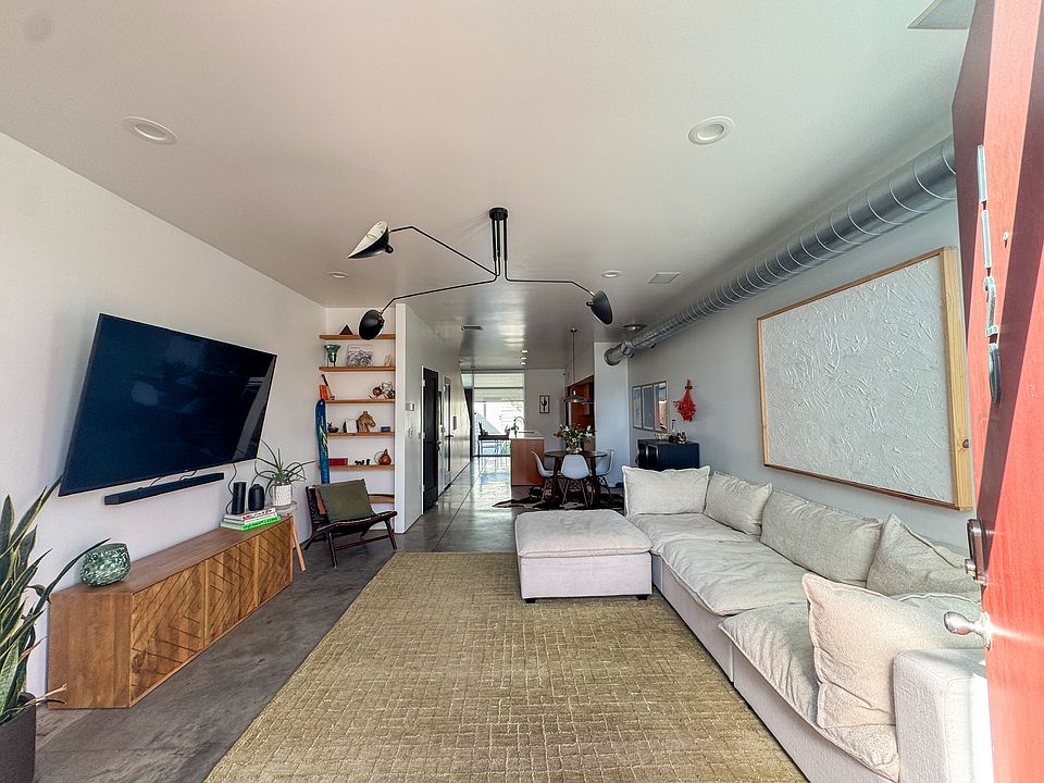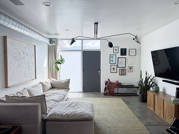 If you're looking for a unique and modern space, check out this park-facing townhome at the Rowhaus Condos. These townhomes are unlike anything else in Salt Lake City and offer much more than the copy-and-paste developments around town. The first floor has an open layout that feels like an art gallery, perfect for entertaining. It features concrete floors, custom floor-to-ceiling windows, a powder bathroom, and a private backyard patio. The oversized two-car garage (21 feet wide by 23 feet deep) has plenty of space for cars, bikes, a workshop, and storage. The primary suite is on its own level, offering mountain views, a walk-in closet, a walk-in shower, and a separate toilet room. There's also a true loft office overlooking the mountains, a laundry room, and two spacious guest bedrooms that share a full bathroom. The Rowhaus townhomes were built with 12-inch insulated concrete forms to provide better energy efficiency, soundproofing, and earthquake resistance. Located between the Central Ninth and Ballpark neighborhoods, you can walk or bike to popular spots like Publik Coffee, Water Witch, T. F. Brewing, Fisher Brewing, The Pearl, Blue Copper Coffee, Woodbine Food Hall, and the Bouldering Project. There's also easy access across town via TRAX, dedicated bike paths, or the nearby freeway.