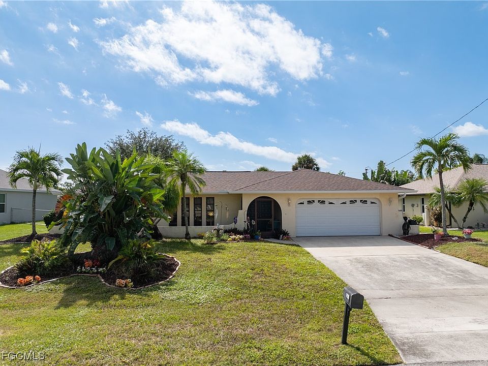 Outside, your private tropical retreat awaits! The large screened-in pool and lanai with lush landscaping, create a serene and private outdoor setting. Whether your relaxing poolside, hosting friends, or enjoying morning coffee this backyard delivers the true Florida lifestyle. enjoy the best of convenience and comfort-this home is ready to move in or customize to your taste. do not miss your chance to live in one of Cape Corals most desirable neighborhoods.