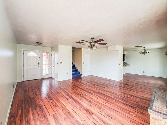 Beautiful West side home located just minutes from area parks, shopping and schools. Updated with wood laminate flooring throughout the downstairs and updated kitchen with tile counters. Fireplace in the open family room and then all bedrooms upstairs with the master having a large closet and full bath along with two more rooms and another full bath. Has refrigerated AC. Call now!