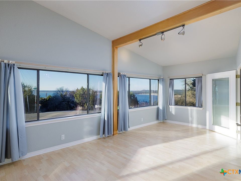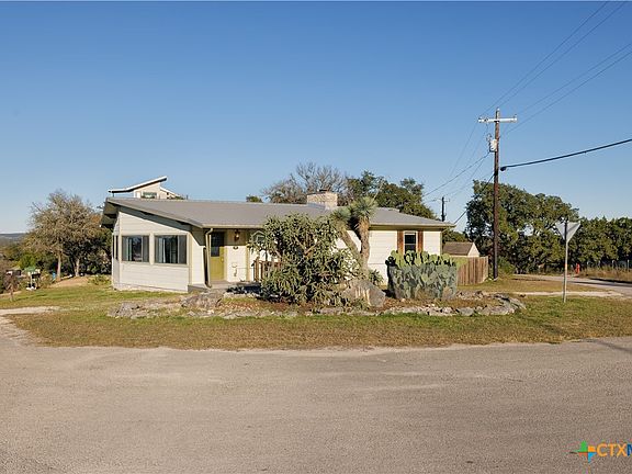 BIG Canyon Lake views out the front windows! Water view from the 2 front bedrooms, living area and wonderfully spacious entry hall. This mid-century vibe 3 BDRM 2 BATH cottage offers hill country character with real stone exterior base and 2-sided stone fireplace. EZ care wood look laminate flooring throughout high traffic areas are family and pet friendly. A generous 8K FLOORING ALLOWANCE OR Buydown. Fully fenced back yard for shaded evening cook outs and relaxation. Strategic styling and this cottage will shine as a Short-term rental, lake retreat perched at a high vista location near Guadalupe River recreation, Camp FIMFO & Whitewater concerts, Canyon Lake Yacht club, restaurants, DAM Overlook Park and hiking in James Curry Nature area all nearby!
